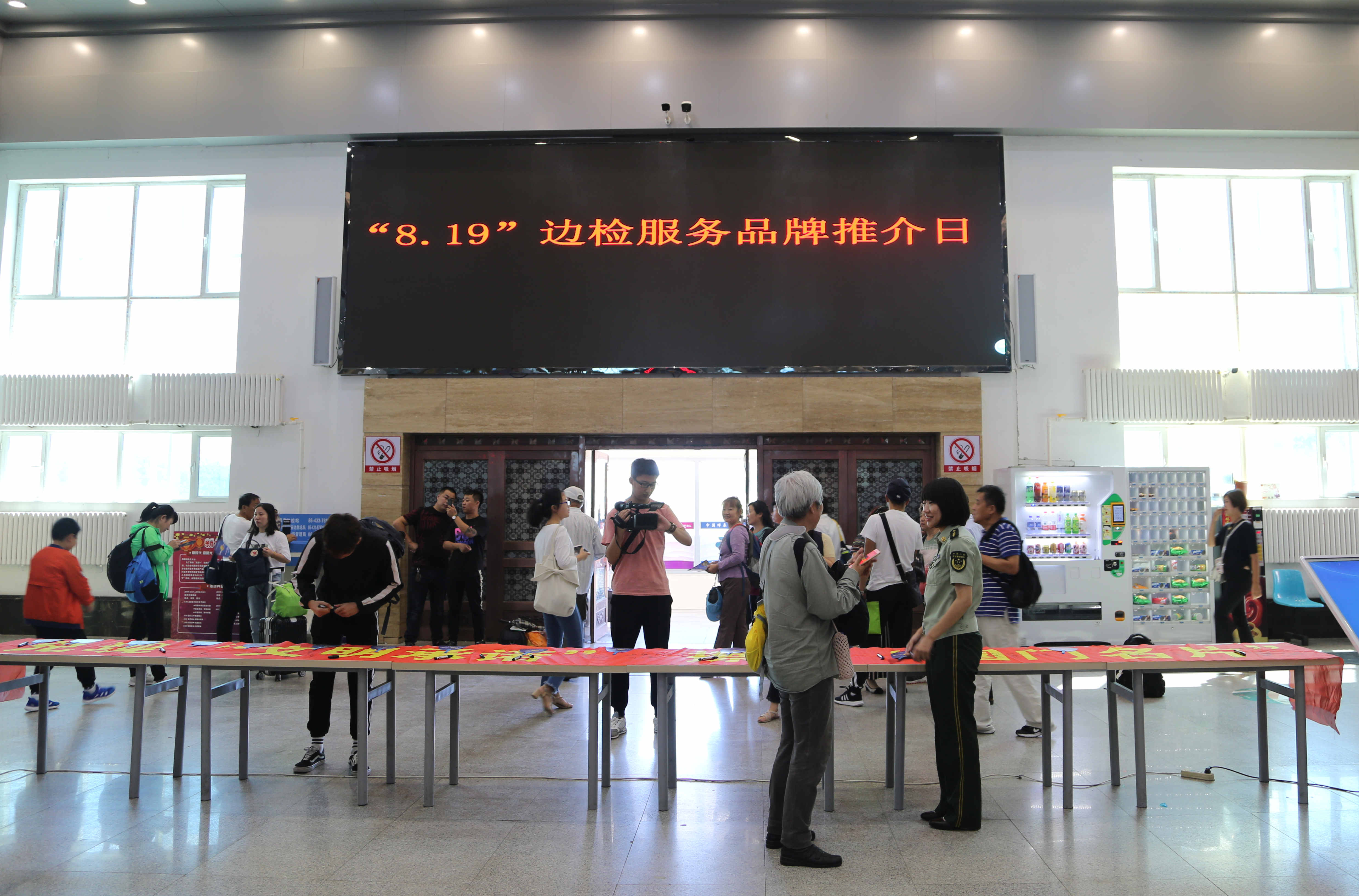 8月16日,珲春边防检查站在珲春口岸举办“8.19”中国边检服务品牌推介日活动。此次活动以“中国边检、阳光国门”为主题,深入推进边检服务品牌宣传管理长效机制建设,依托国家移民管理局便民、利民新举措,进一步推动2018年中国边检服务品牌推介活动,扩大中国边检服务品牌社会影响力,提升广大边检官兵的职业自豪感和荣誉感。