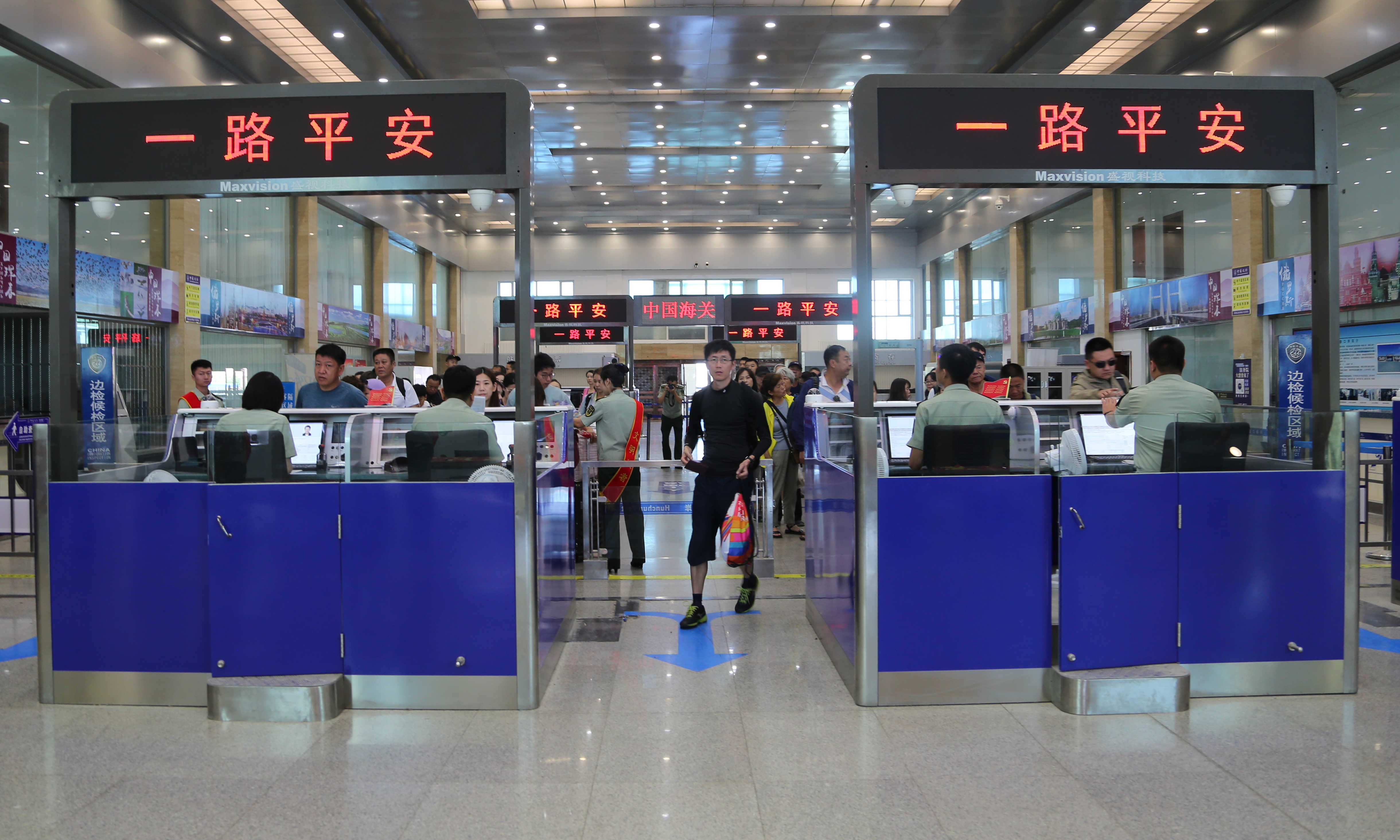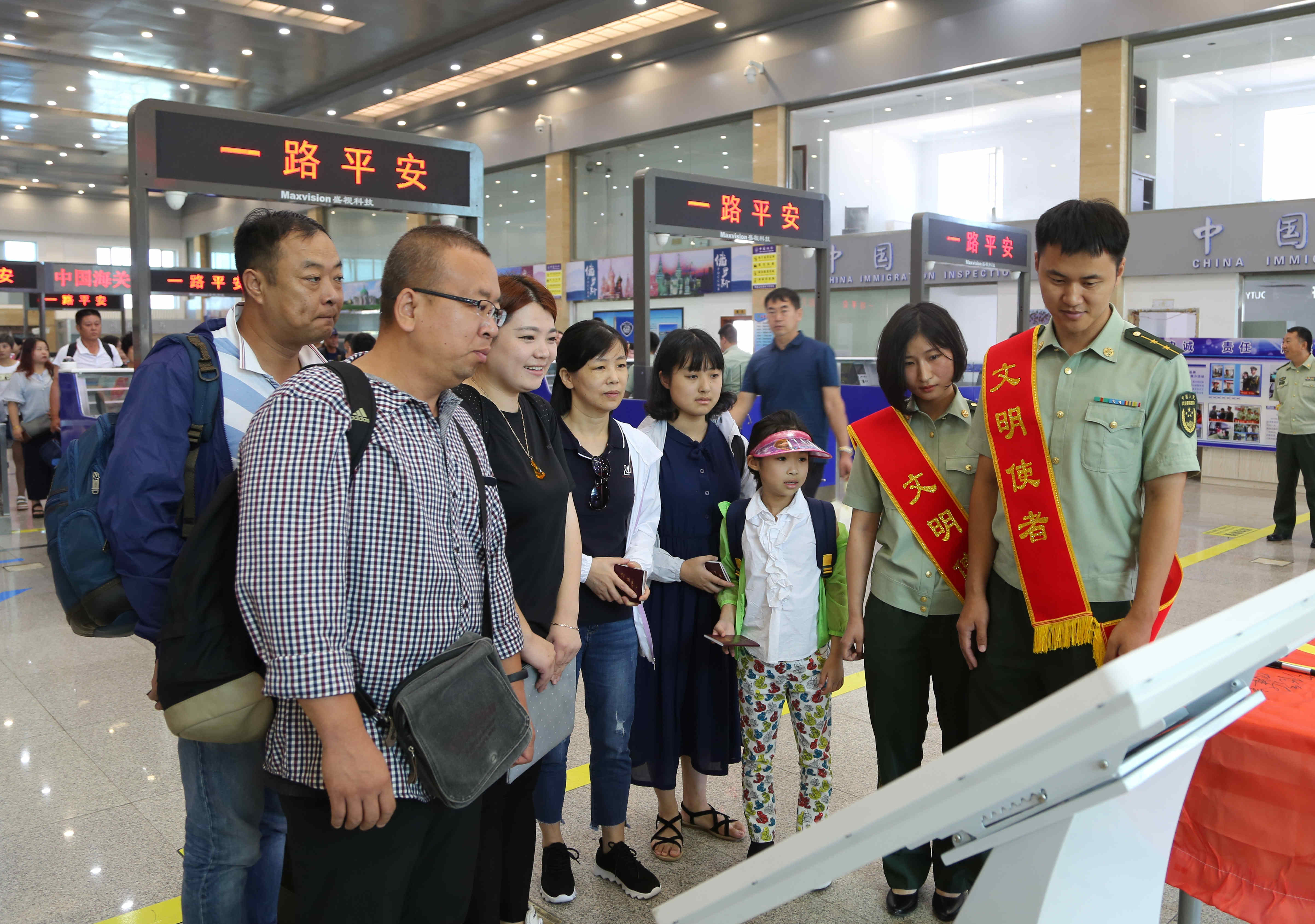 珲春边检站为满足广大游客需求,大力加强软硬件建设,陆续更换了查验设施设备、简化查验手续,安装增设了智能验证台、自助通道、出入境卡片自助打印机等,“自助通关”服务实现了中国公民通关速度平均为45秒每人,增加了中国公民的通关优越感,切实解决出入“高峰期”游客排长队的“烦心事”,真正将“中国公民出入境通关排队不超过30分钟”落到实处,展示了中国风范、中国形象,进一步擦亮“中国名片”。