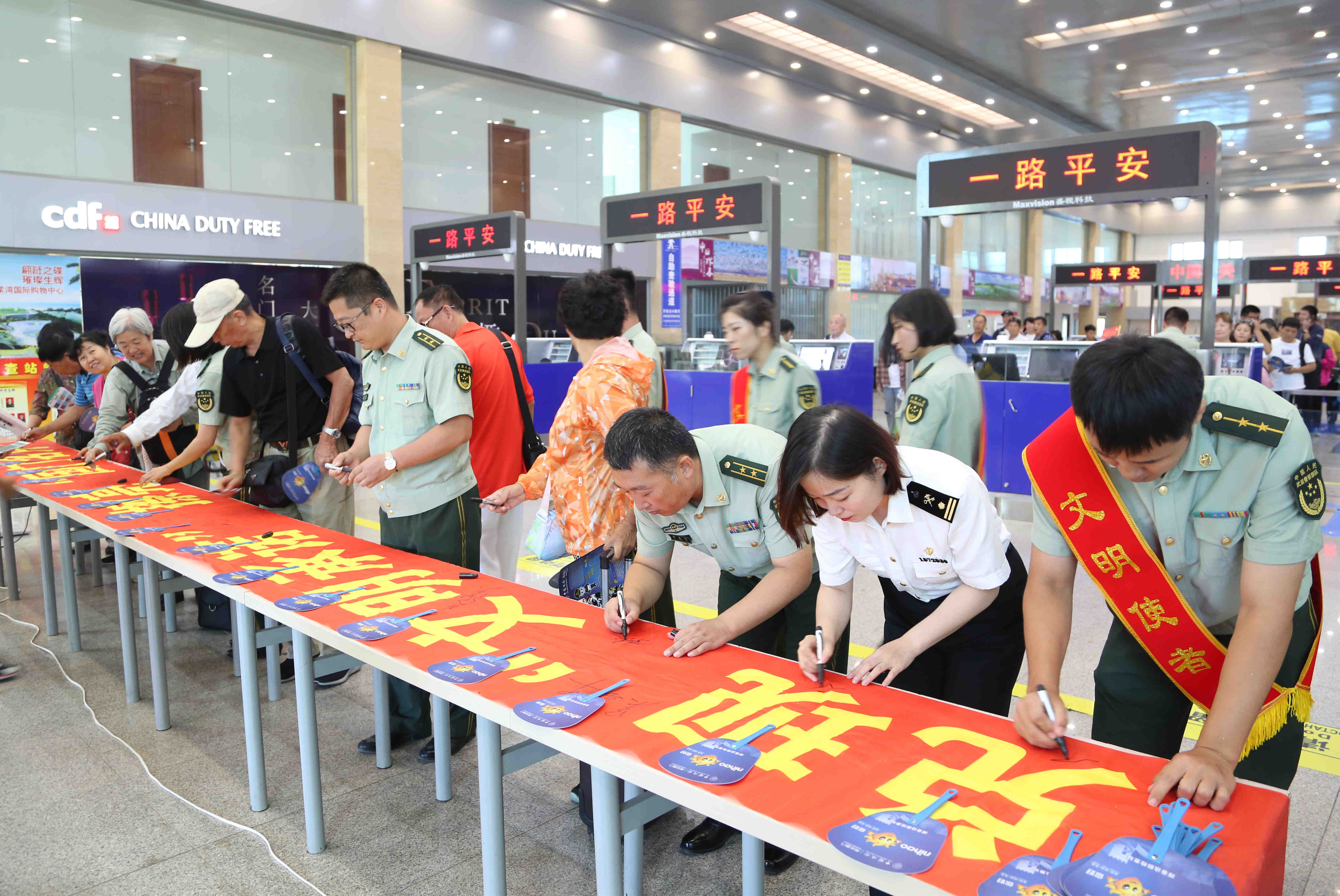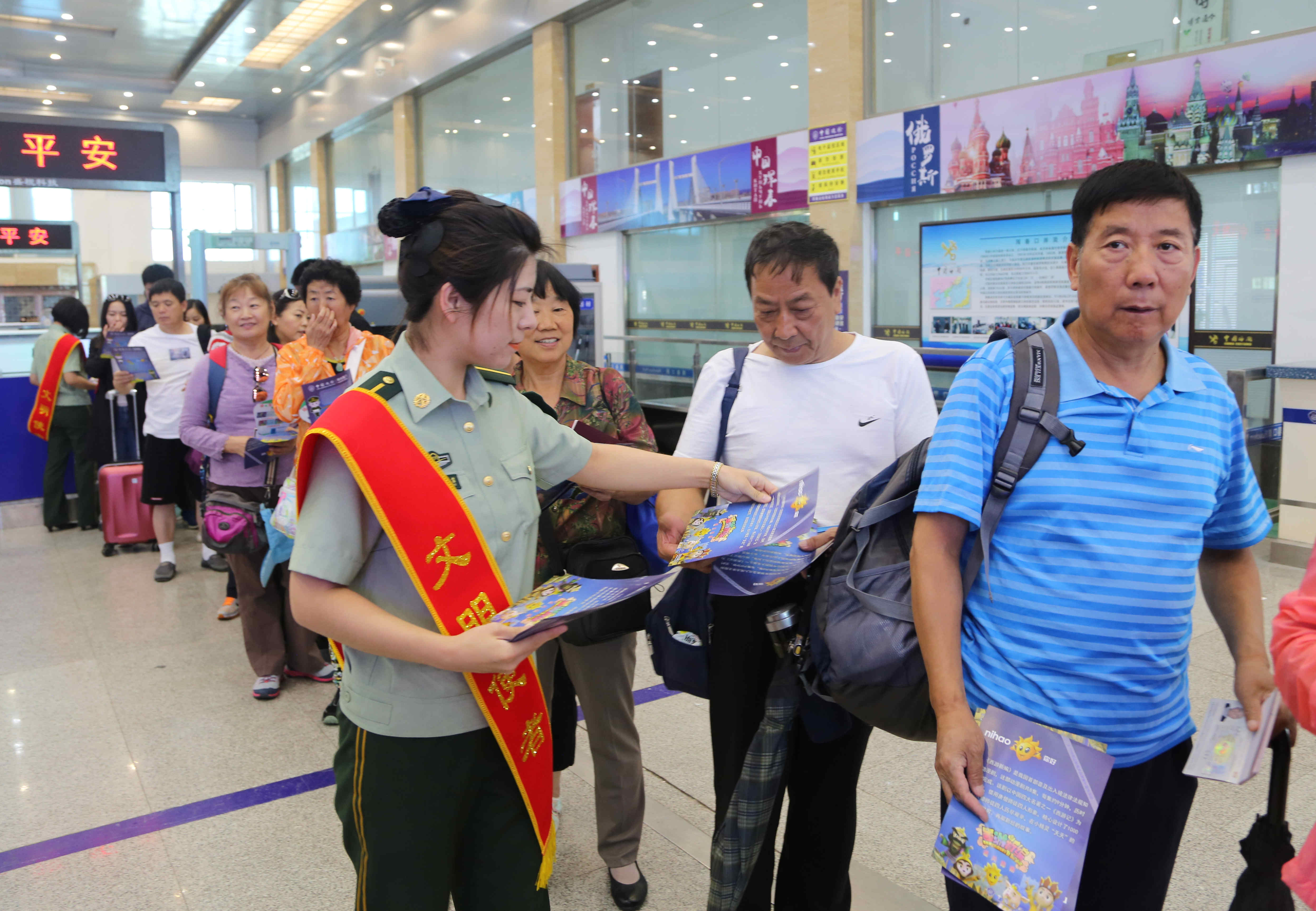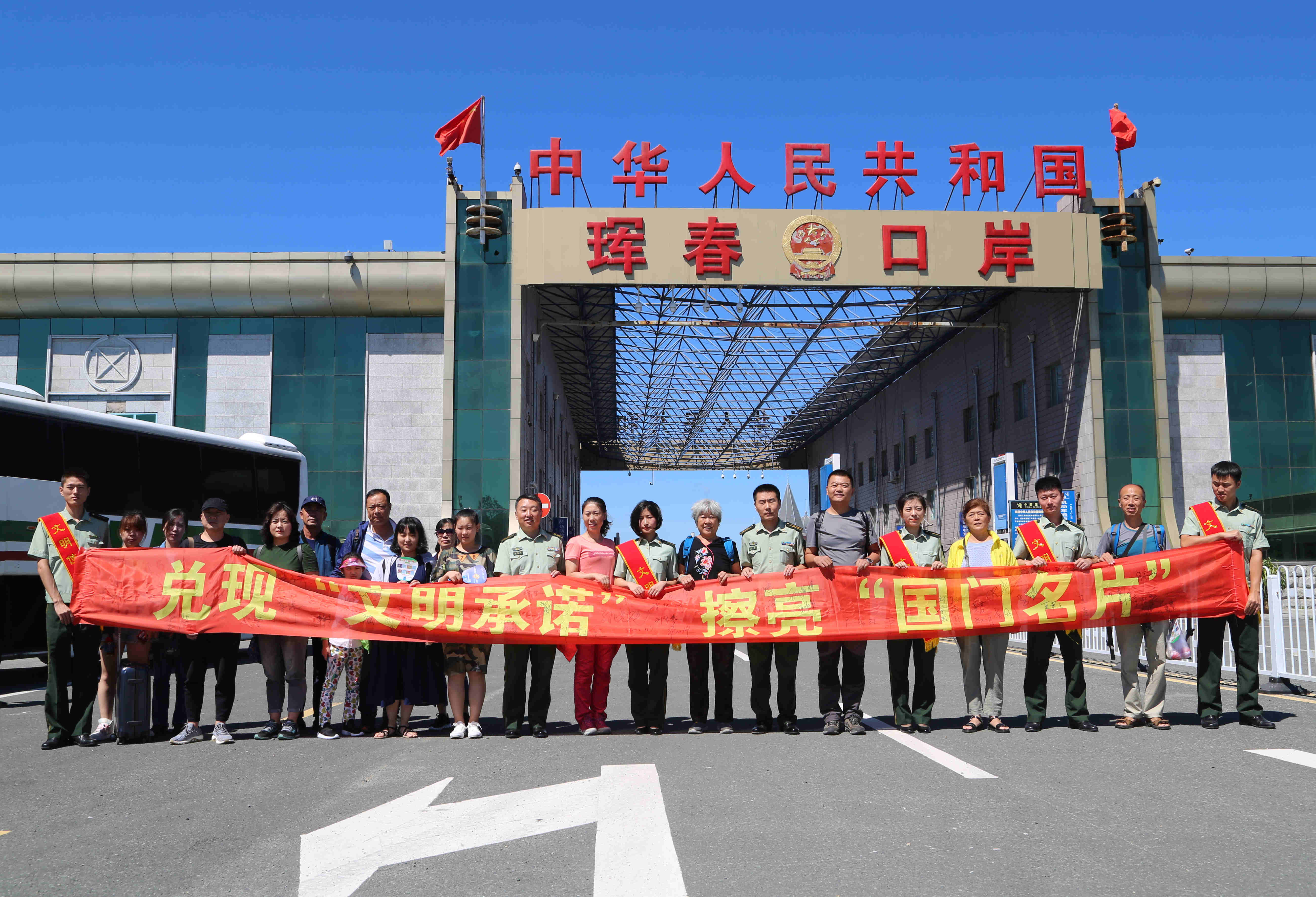 活动期间,珲春边检站向出境的国内外游客发放了边检宣传单,利用VK俄罗斯社交平台播放了《西游新编》动漫片和珲春边检站宣传片,出境游客和边检站官兵在书有“兑现‘文明承诺’、擦亮‘国门名片’”的大红条幅上郑重签下自己文明出行的“诺言”。