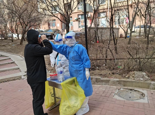 “4月4日,给密接的志愿者和工作人员采集核酸检测样本。”
