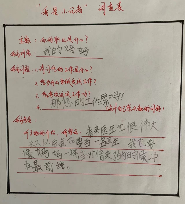 挂断视频,奶奶给铁静发来两张图片,是儿子的作业,上面写着“长大以后我也要当一名医生,我也要像妈妈一样,当疫情来了的时候冲在最前线”,一向不善于表达的儿子原来是这样崇拜妈妈,支持妈妈工作,铁静的眼泪止不住地流下来。铁静说,回去一定好好抱抱孩子,搂着他陪他聊聊天!