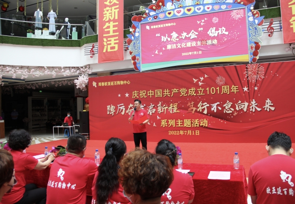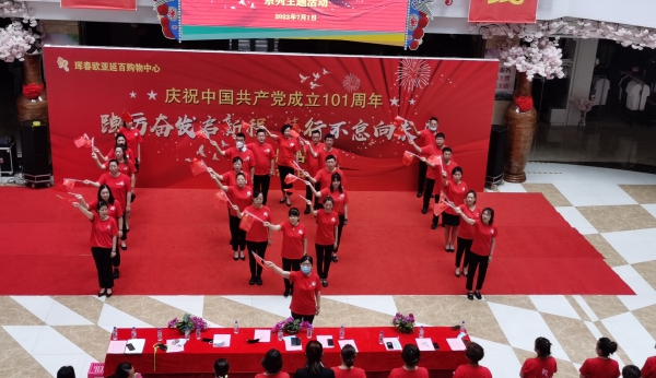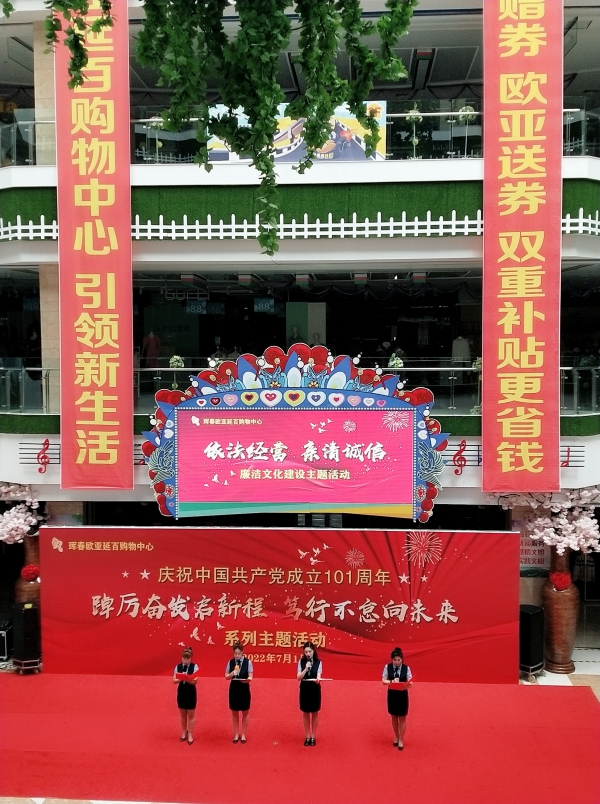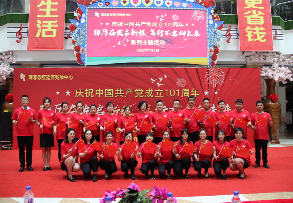 在中国共产党建党101周年之际,为了教育引导广大党员、积极分子传承和发扬党的优良传统和作风,不忘初心、牢记使命,7月1日7时,珲春欧亚延百购物中心在一楼中央共享大厅开展了“踔厉奋发启新程 笃行不怠向未来”系列主题活动。