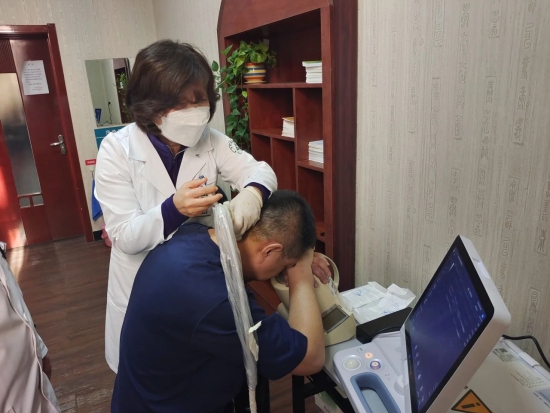 义诊现场,李仁淑在珲春市人民医院麻醉科主任金文哲的配合下,为几位饱受肩周炎、颈椎病、颈源性头痛、肱骨外上髁炎等慢性疼痛折磨的患者进行超声引导下的注射治疗。治疗结束后,患者疼痛情况得到了明显改善。