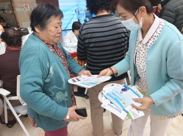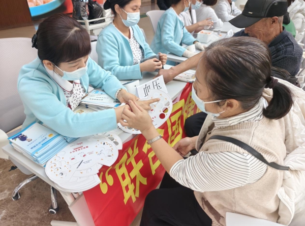 义诊现场,医护人员免费为前来参加的活动的市民测量指尖血糖、血压,让其了解自己血糖的同时,还为其答疑解惑,发放糖尿病知识宣传材料,提高市民对糖尿病的认识。随后,医护人员还进行了现场科普互动,趣味性与知识性相结合的宣讲方式吸引居民频繁互动,得到了一致好评。