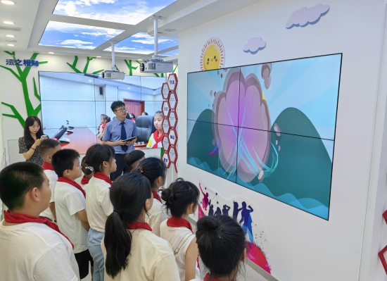 据介绍,基地成立于2022年10月,是一座集成果展示、科普教育、寓教于乐等多功能于一体的现代化展示馆,展馆建筑面积约200平方米,弥补了珲春市青少年法治教育基地的空白。基地适应青少年法治教育目标要求的新变化,通过声、光、电先进融合技术,将发光图片、互动多媒体等现代声光电技术融入多项展示环节,以青少年成长过程中易发生的问题及引导青少年正确解决问题为主线,营造自觉学法、知法、懂法、守法、用法的良好氛围,促进青少年健康成长。